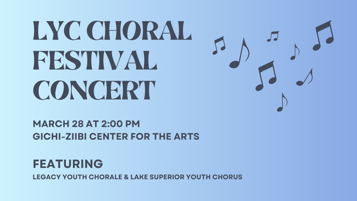 The performance features LYC Choristers and Concert Choir, as well as a guest choir from Lake Superior Youth Chorus.